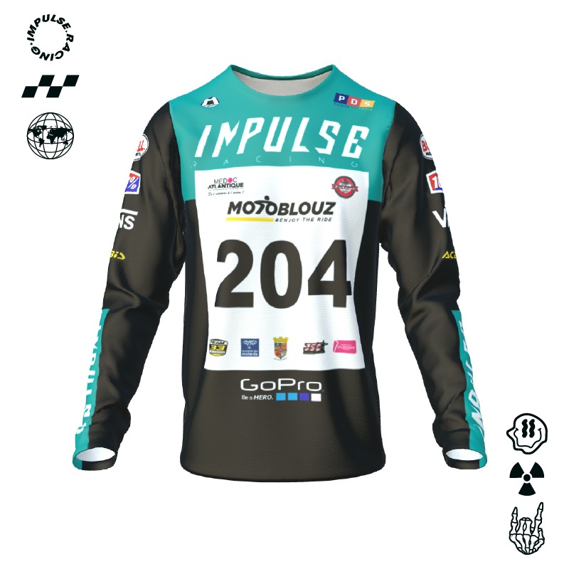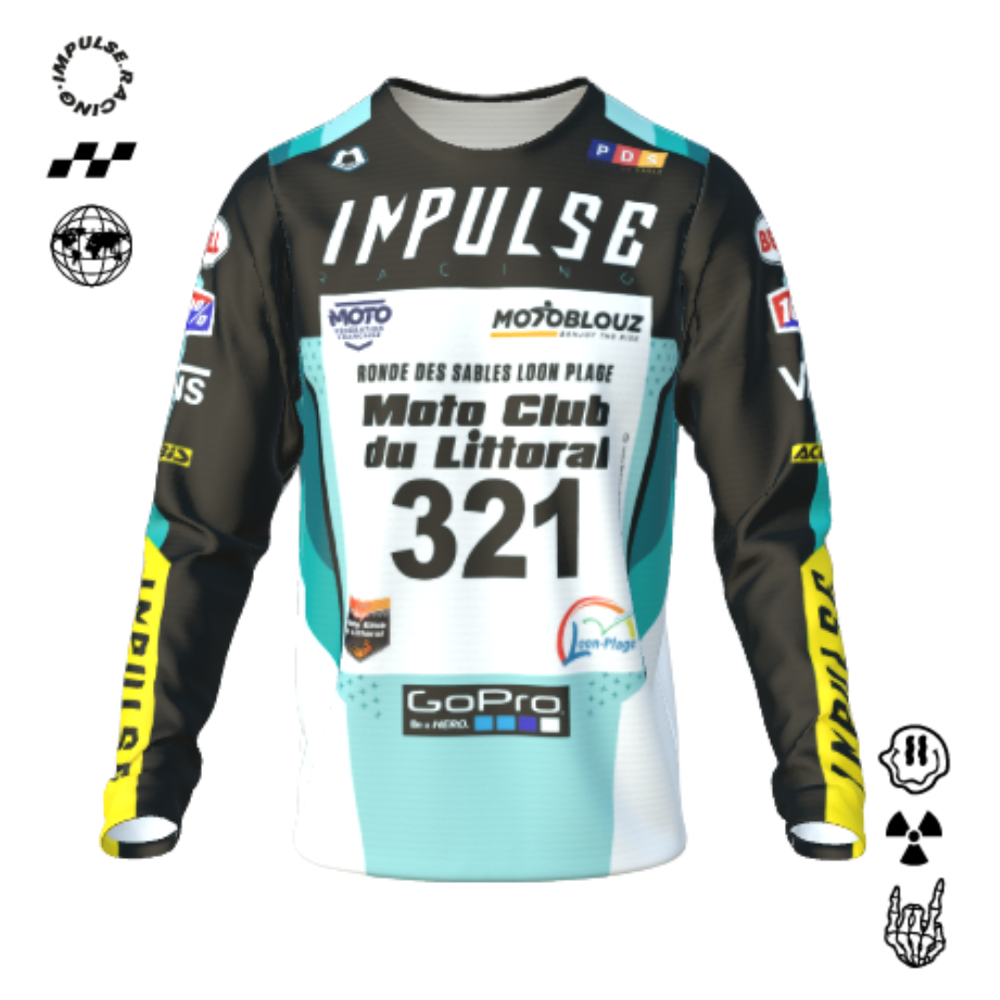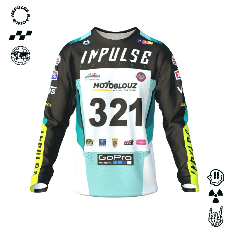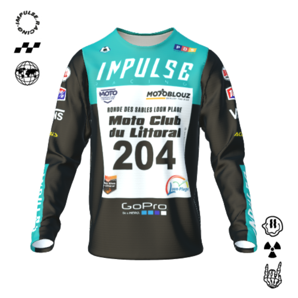 Utilizzate il nostro configuratore 3D online per integrare il pettorale della vostra gara francese CFS 3AS-racing su sabbia direttamente nella vostra maglia completamente personalizzata. Che siate dilettanti o professionisti, che partecipiate a una gara CFS o all'intero campionato francese di motocross su sabbia, avete diritto al comfort e alla qualità made-in-France di una maglia da corsa Impulse con il numero di gara CFS integrato.