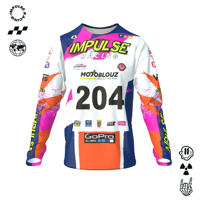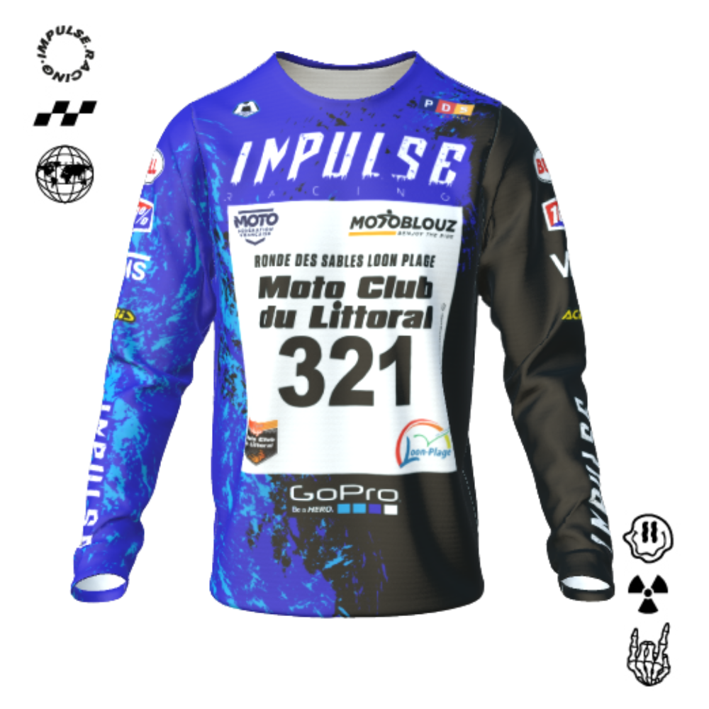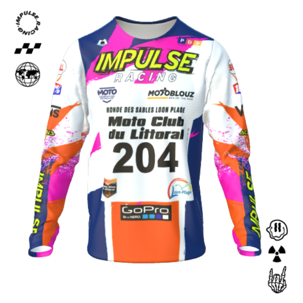 Maglia personalizzata con la pettorina del Campionato francese di corsa su sabbia CFS direttamente integrata nella vostra maglia Impulse Racing